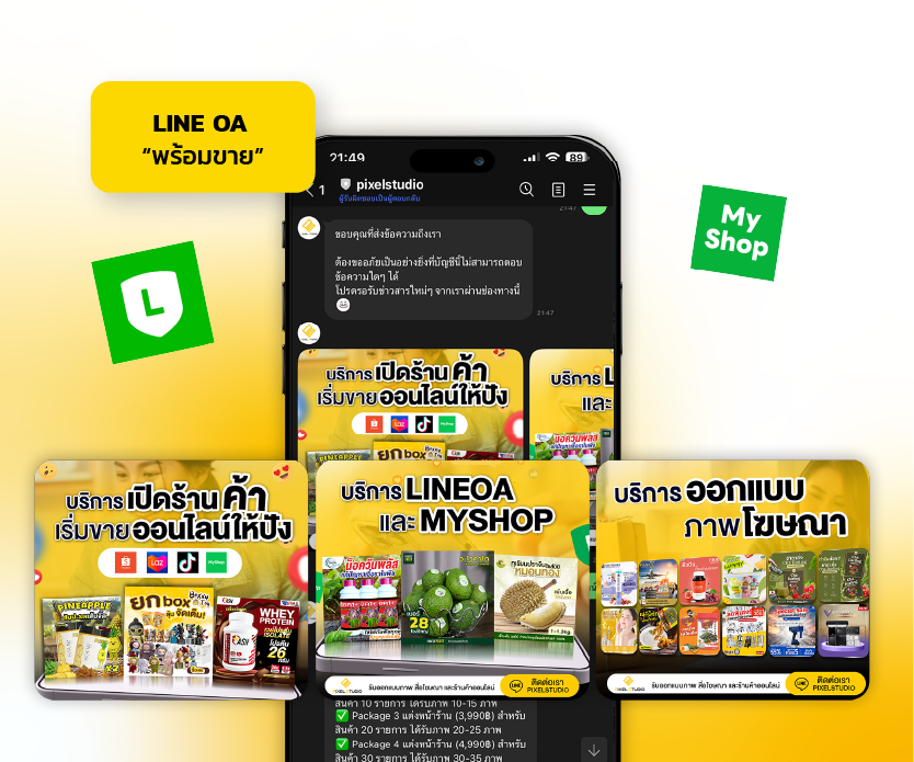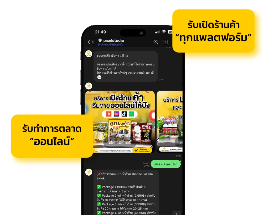 “Pixel studio” เราไม่ได้แค่รับทำการตลาดเพียงอย่างเดียว แต่เราดูแลให้ครบโดยเริ่มตั้งแต่ต้น ให้คุณวางใจได้ว่า เมื่อให้เราดำเนินการคุณจะได้รับบริการที่คุ้มค่า เรามีความเชี่ยวชาญทางด้านการตลาดออนไลน์มามากกว่า 4 ปี เรามีบริการที่ครอบคลุมกับ ธุรกิจของคุณ เริ่มตั้งแต่การเปิดร้านค้าออนไลน์ การลงสินค้าบนแพลตฟอร์ม Ecommerce ต่างๆ การทำเว็บไซต์สำหรับขายสินค้า ตลอดจนถึงการดูแลร้านค้าออนไลน์แบบครบวงจรในที่เดียว
